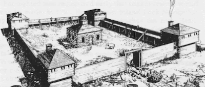 In 1987, on the site of Fort Hunter, archaeologists started work before construction began for a parking lot for the Schoharie Crossing State Historic Site. The work resulted in the first recorded material evidence of the 18th century settlement. The full report is fascinating. 199 fragments of bone, teeth and shell reveal the dietary habits of the residents included pork, beef, shell fish, fowl, and possibly venison and mutton. 125 remnants of vessels and utensils were found. The only evidence of alcohol consumption were found in four dark sherds of bottle glass. Of the 114 ceramic sherds with a good percentage being tin-glazed earthenware (delft). Sherds of buff earthenware, white salt glazed stoneware were found but no creamware. Fourteen vessels specifically identified were teawares! Obviously teatime was a ritual at Fort Hunter. Other objects found include a single straight pin, two sections of a shoe buckle, a bone brush, sherds from a medicine vial and two William III and one George II half pennies. An iron Jew's harp was found, which was a common trade item, and 199 white clay fragments of smoking pipes. At least 15 were probably produced by Robert Tippet of Bristol (whose pipes were also found at Fort William Henry and Fort Michilimackinac excavations.) Architectural artifacts included nails. carpenter dividers and window sherds. Deeply buried walls were discovered, but not explored - they may be part of the original fort. All the evidence provides a glimpse into the colonial life at Fort Hunter.